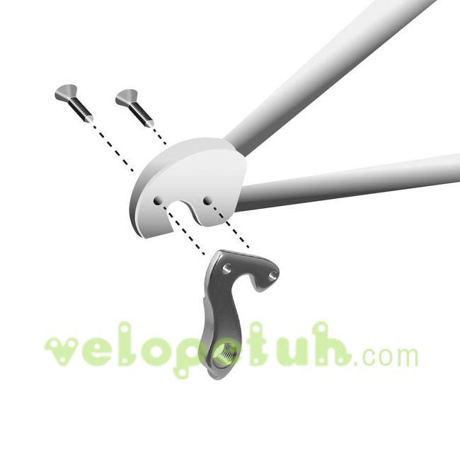 H490 Alloy Rear Derailleur Hanger. Assembly from outside with 2 screws, threading in hanger.