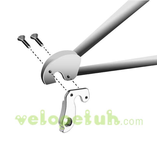 Алюминиевый сменный крюк или петушок для велосипеда - это деталь для крепления заднего переключателя к раме велосипеда. Устанавливается держатель заднего переключателя H182 с наружной стороны пера. Крепится серьга на раму двумя винтами M4.