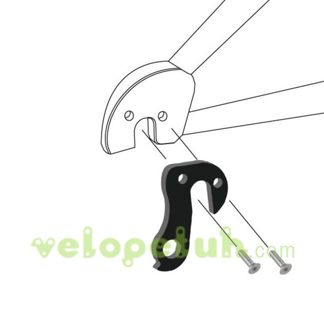 Серьга на раму или велопетух - это алюминиевый сменный крюк для крепления заднего переключателя к раме велосипеда. Велопетух H230 устанавливается с наружной стороны пера. Крепится двумя винтами M4.