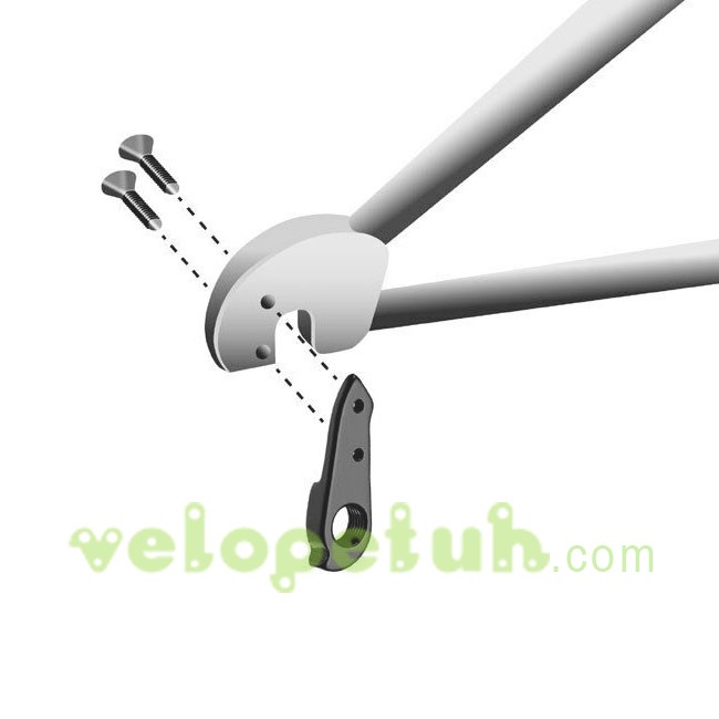 Алюминиевый сменный крюк или велопетух - это кронштейн для крепления заднего переключателя к раме велосипеда. Сменный петух H464 подходит для шоссейных велосипедов Cervélo 2011г.в. Велопетух на раму устанавливается с наружной стороны пера. Крепится двумя винтами M3.
